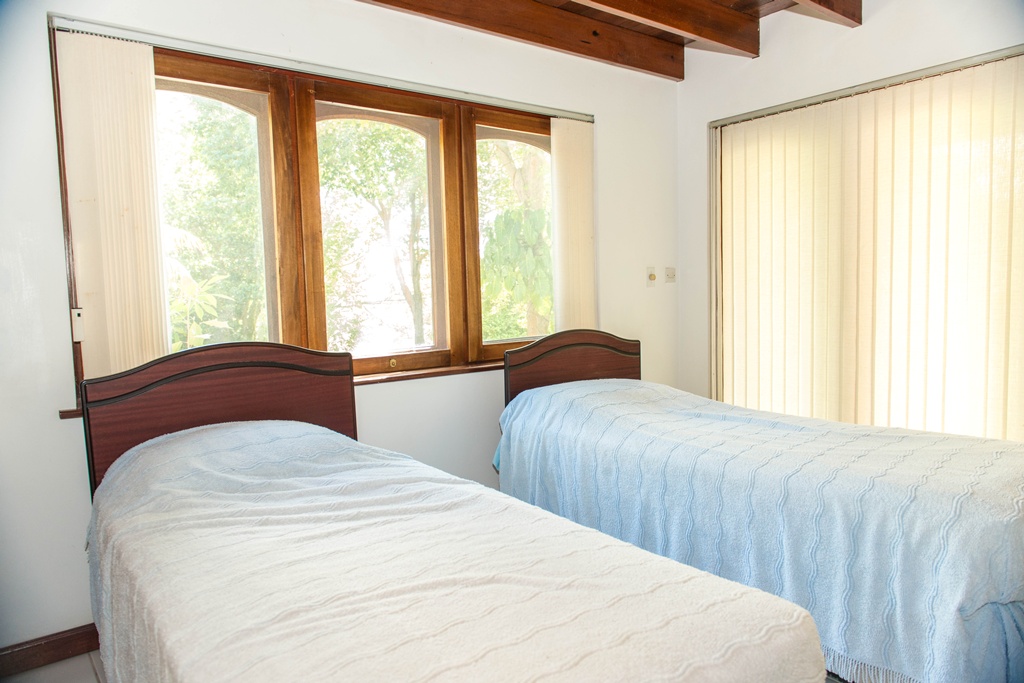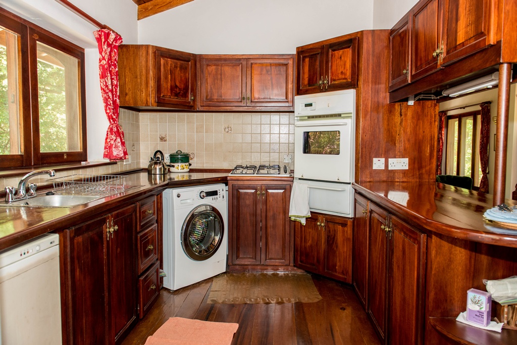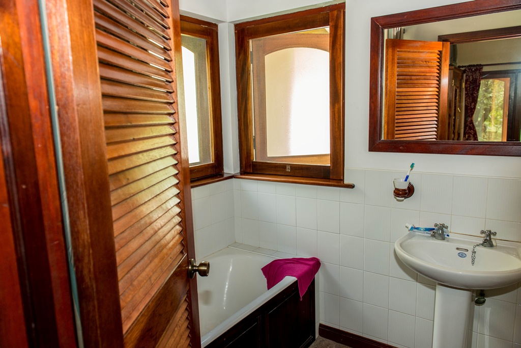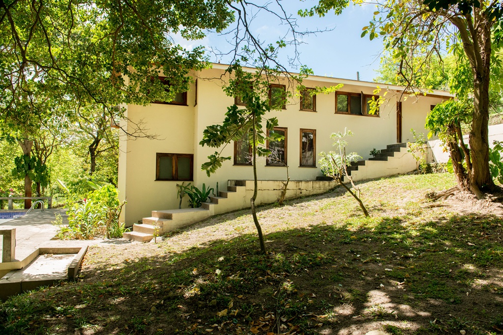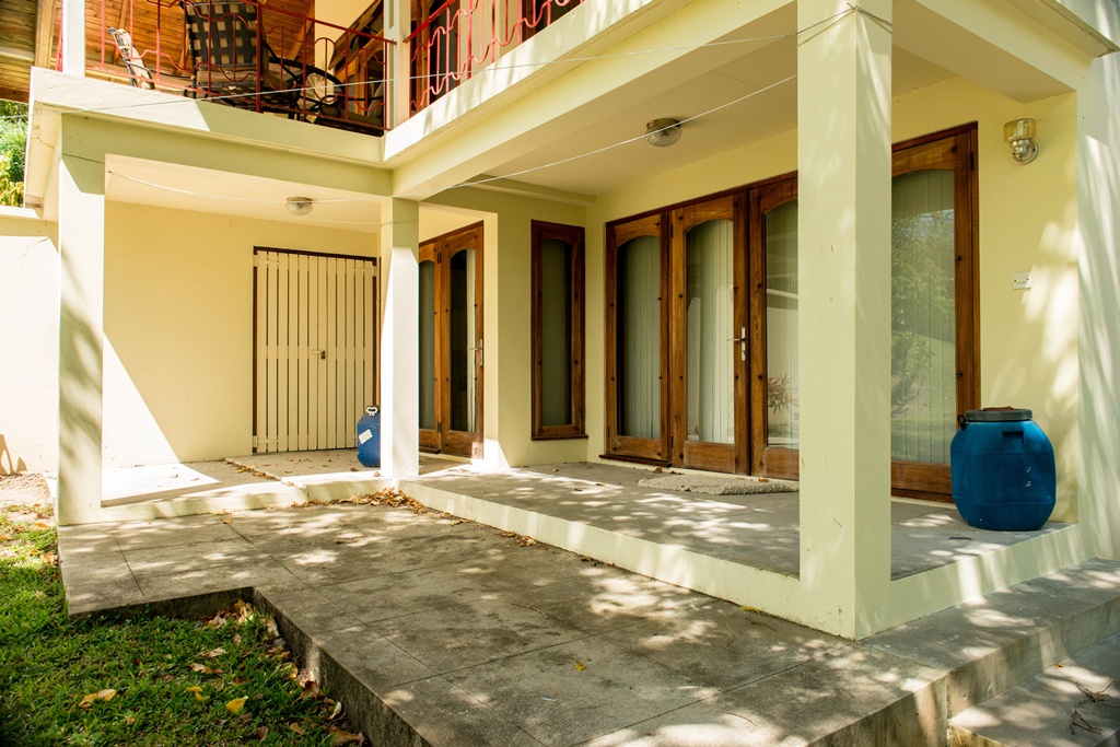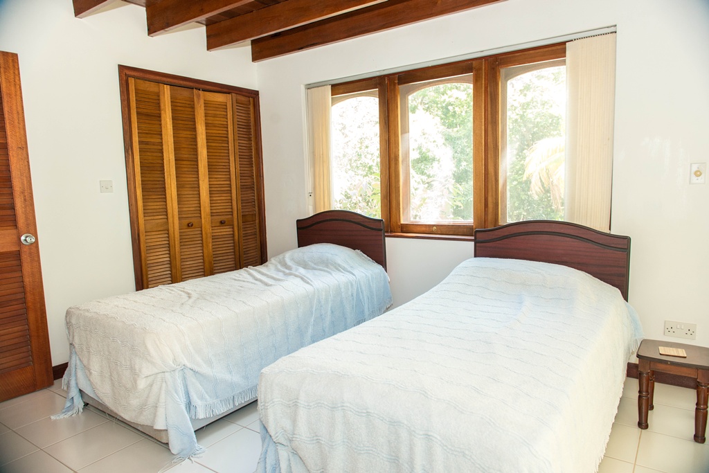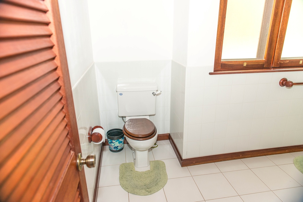 Mango View villa is simply enchanting with its exotic wooden trims and finishes! Greenheart wood flooring, mahogany doors, casement windows, railings, cabinets and trim provide a warm feeling which flows all through this lovely home. One bedroom is located on the upper main level accompanied by an en-suite bathroom, along with a modest kitchen finished with mahogany paneled cabinets. Adjacent to the kitchen is an open plan formal dining area which steps down to the large living/family room. The western facing veranda presents a lovely view of beautifully landscaped rolling grass lawns and the Caribbean Sea in the distance. Mahogany clad stair threads lead from the main level down to the lower level which has 2 more bedrooms and a shared bathroom. On the outside a few steps lead from the lower level patio to a large swimming pool with a wrap around pool deck. Mango view is tastefully enhanced with lovely mahogany furniture and fully equipped high quality appliances. The villa is centered on approximately 0.60 acres providing Owners with a very private and peaceful setting.